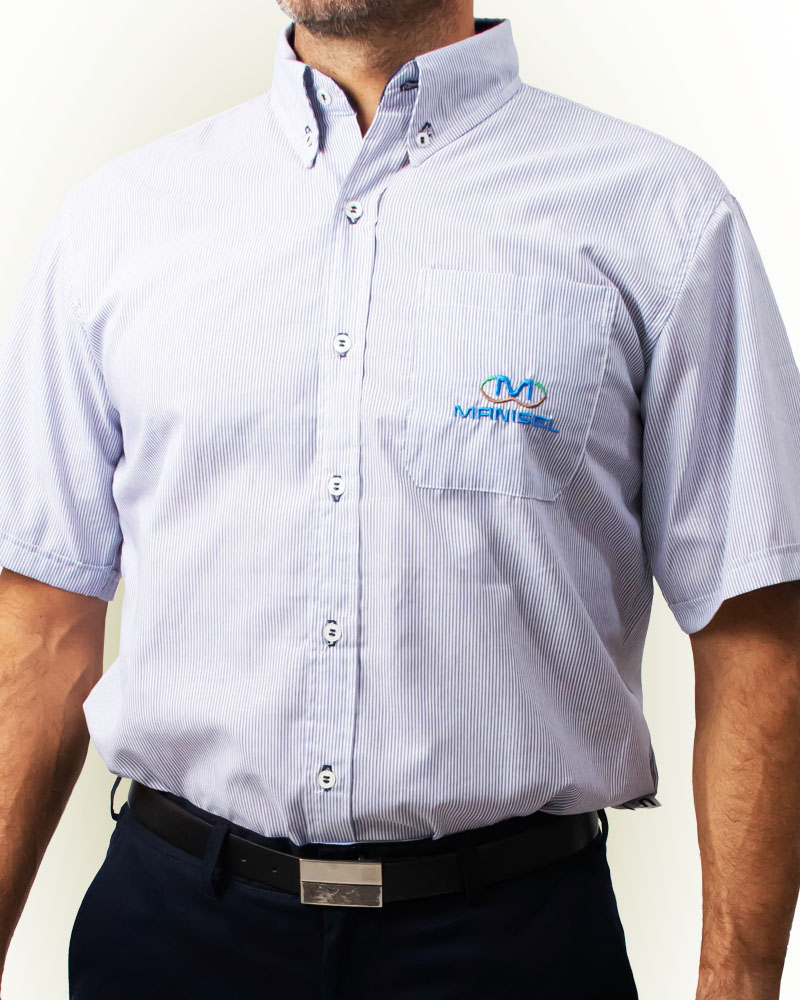 C16 - Camisa hombre batista rayada mangas cortas - Con ojales combinados cantidad