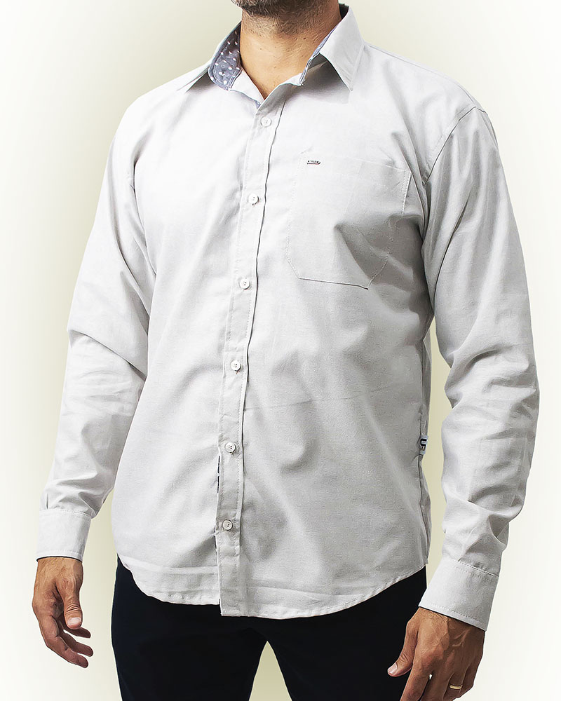 C07 – Camisa hombre slim oxford premium mangas larga con pie de cuello combinado
