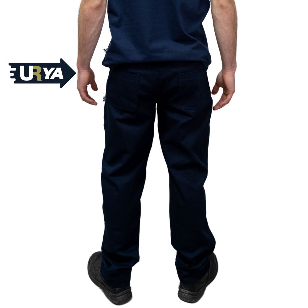 / URYA4 – PANTALON HOMBRE CARGO DE GABARDINA AZUL MARINO – 6 BOLSILLOS